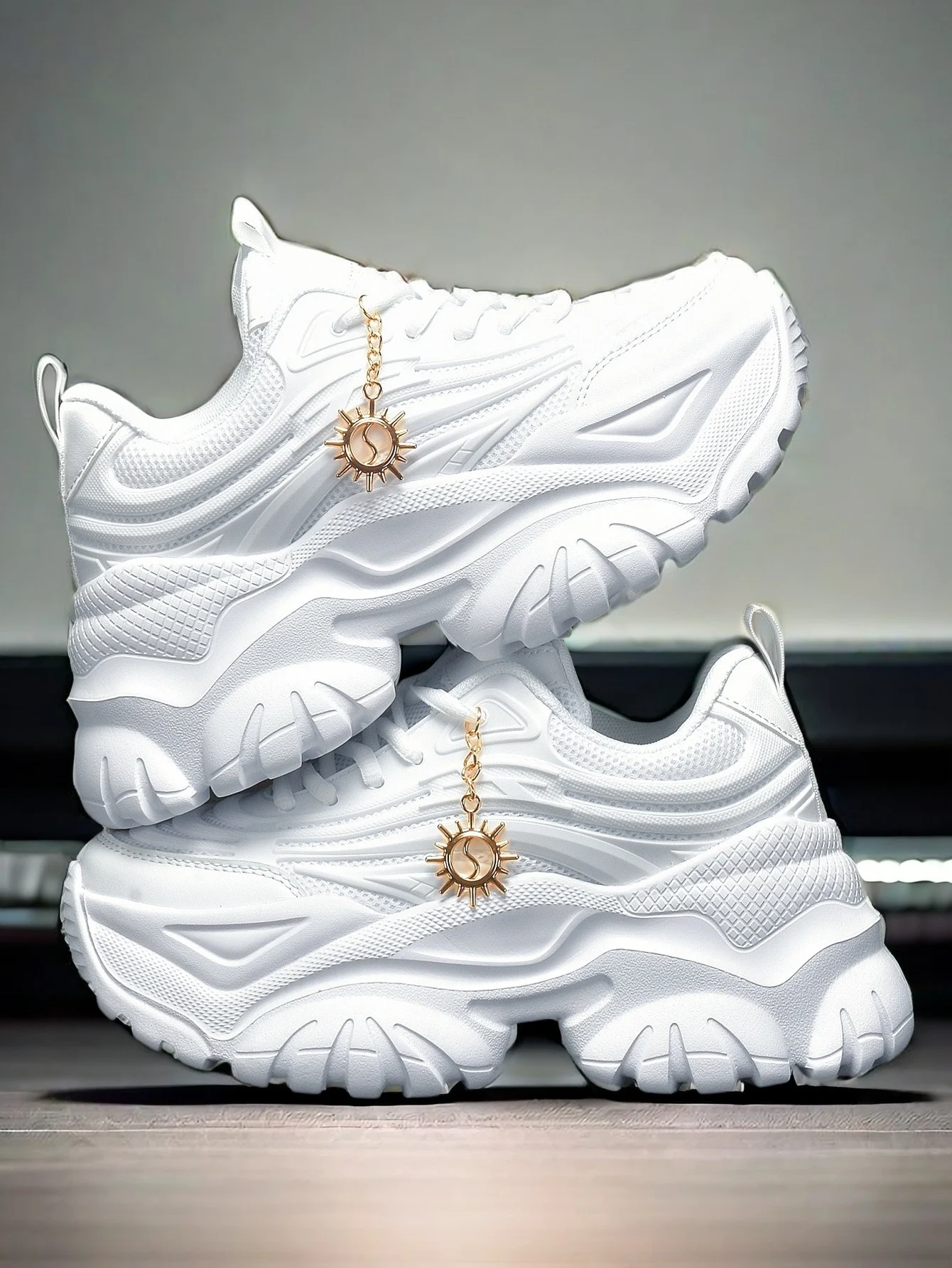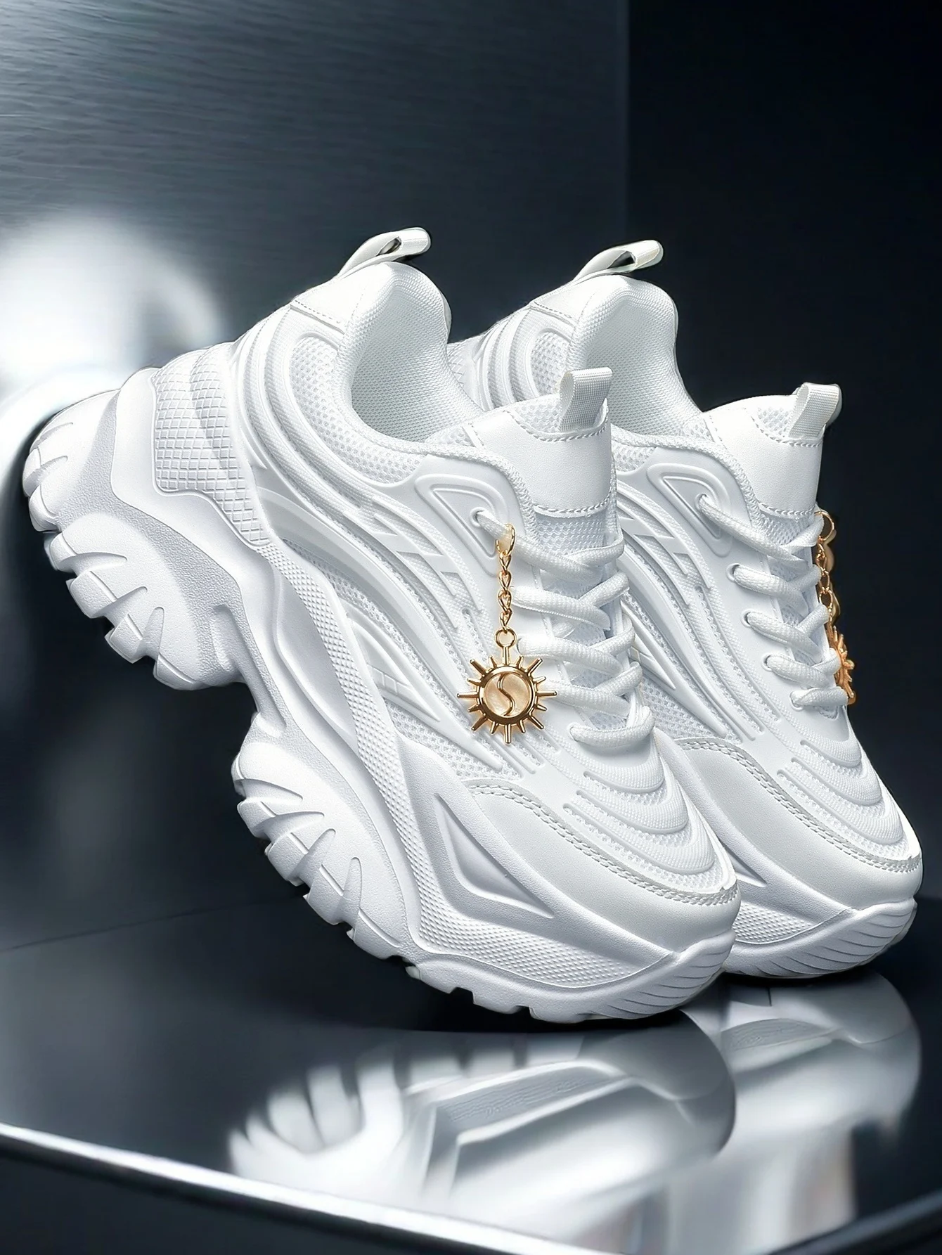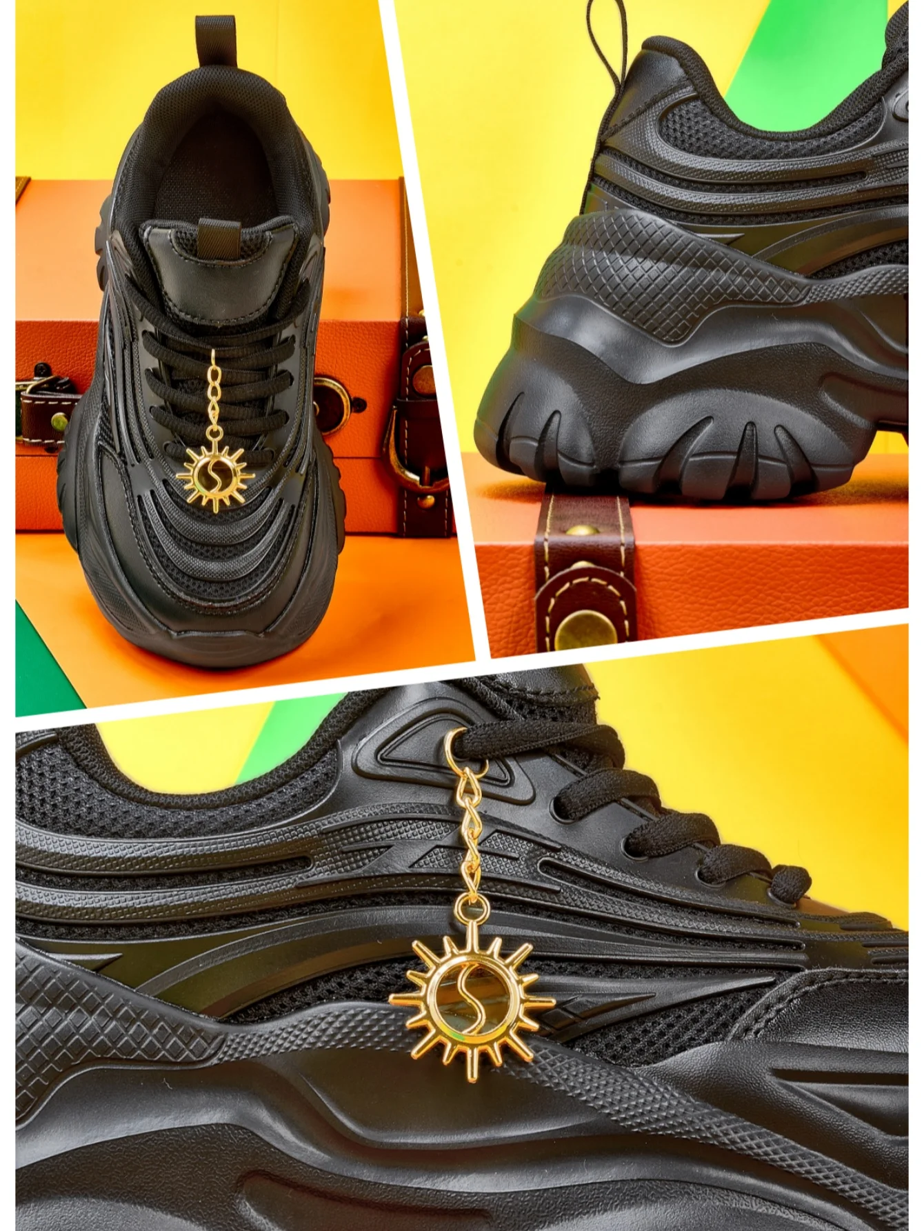 • نمط القلادة والشريط: يضيف نمط الشريط لمسة من الموضة إلى هذا الحذاء، وتضيف قلادة عباد الشمس المزيد إلى جماله، بالنسبة للإنسان الذي يريد أن يبدو جيدًا عند ممارسة الرياضة، هذا اختيار جيد.